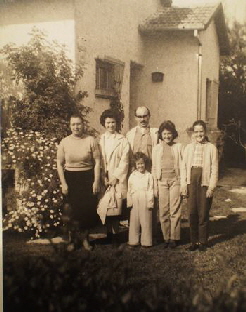 צילום משנת 1959 בצילום כולנו עומדים כמו עמידת דום חוץ מאמי שמחזיקה שקיות. אבי מצלם אותנו עם המצלמה של האורח מאנגליה שמופיע בצילום. הצילום הזכיר לי, להפתעתי, איך אבי, שנתן לנו חינוך כאילו היינו חיילות שלו, השפיע גם על העמידה שלנו כשהוא צילם אותנו ומסתבר שגם על הקריירות שהיו לי. לא יאומן! אני לצדו של האורח. |